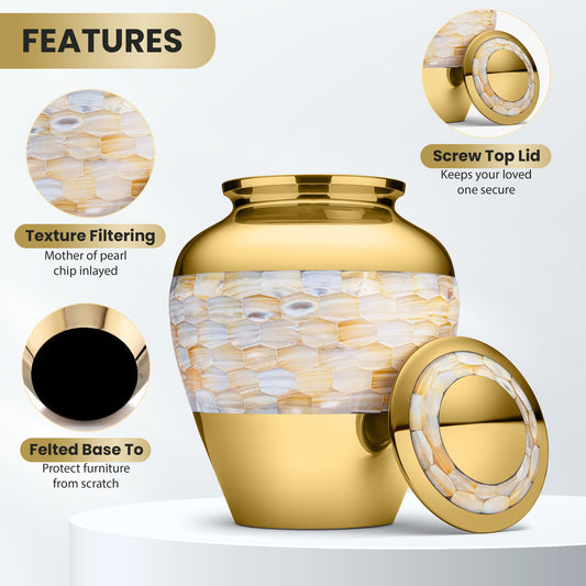 Gold Mother of Pearl Urn for Ashes Medium SizeSold outGold Mother of Pearl Urn for Ashes Medium Size