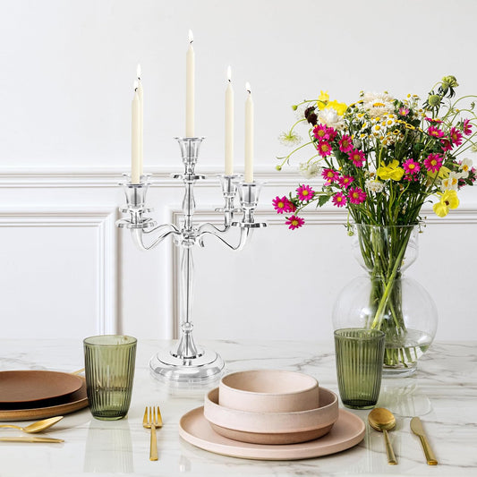 12" Inch Tall 5 Arm Candlestick Candelabra Candle Holder | Silver Finish