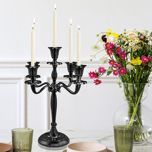 12" Inch Tall 5 Arm Candlestick Candelabra Candle Holder | Black Finish