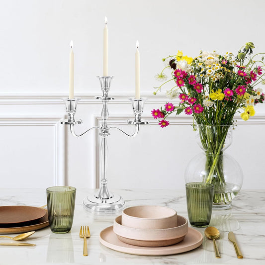 12" Inch Tall 3 Arm Candlestick Candelabra Candle Holder | Silver Finish