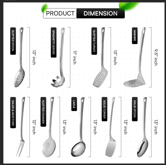 9 Pcs Stainless Steel Kitchen Cooking Utensils Set | Tools Gadgets 13" Inch large Sizes