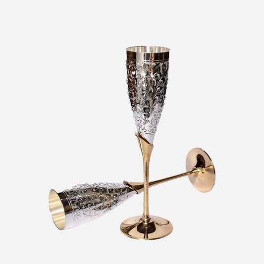 Product Details: SIMCS Handicrafts presents exclusive handmade silver plated & gold polished brass champagne flutes.