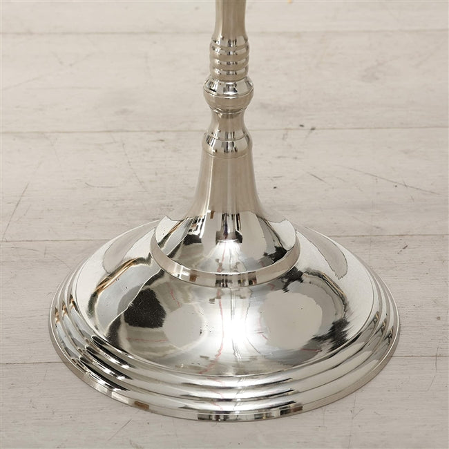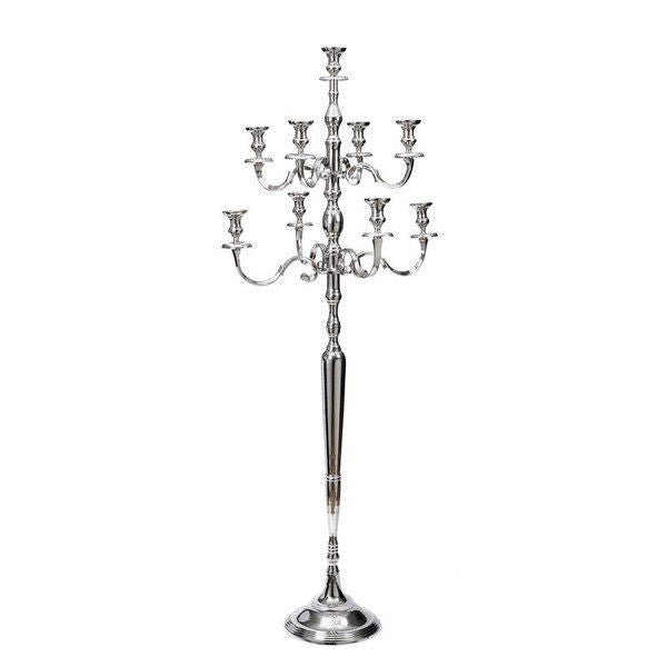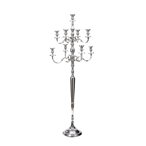 Material Used: Aluminum Available Sizes: ( 60 INCH OR 5 FOOT TALL ) And ( 72 INCH OR 6 FOOT Tall ) Package Weight: 10 Lbs (1 pc) Finish: Silver Nickle Plated 9 Arm Floor Standing Candle Holder (Candelabras ) Features: Our 9 Candle light candelabra is simply elegant, stylish to hold 9 taper candles . It add style and beauty to your party with our stunning silver Candle holder. With 9 arms, extend the wonderful glow of a lighted candles to welcome your guests. Felted Base: Yes Returns & Replacement : 30 Days ( For Retail Buyers )Interested in wholesale pricing or special orders ? Please contact us .Shipping Details:
