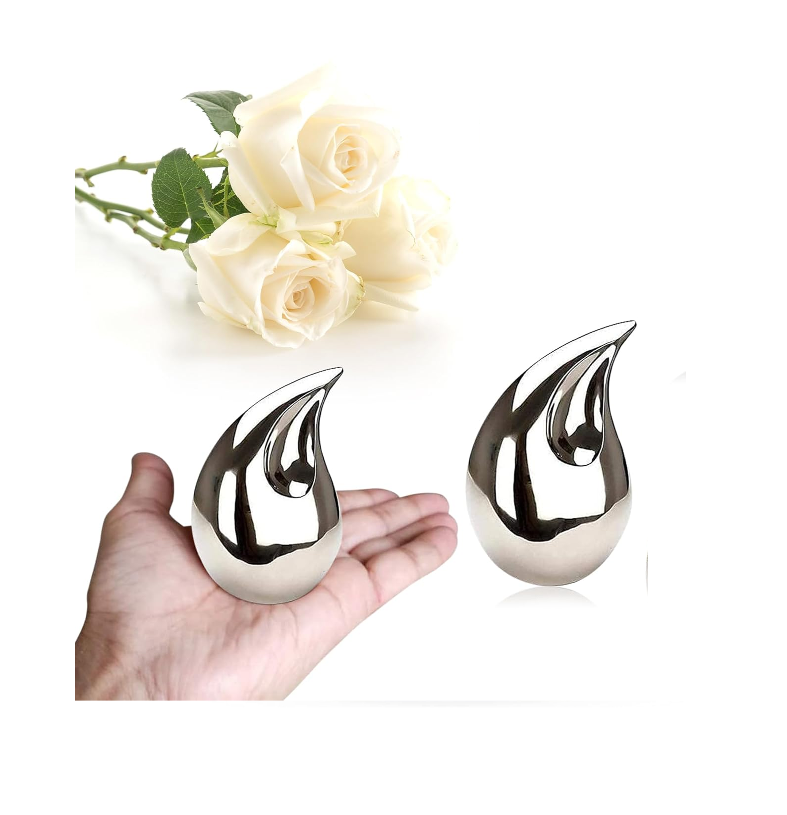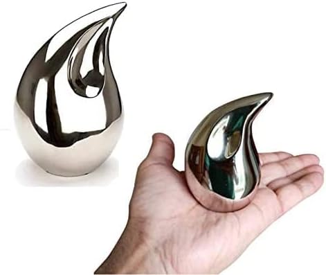 Product Details: Small size, keepsake Teardrop Cremation urn, is our newly added memorial urn for storing small amount of token ashes of your loved ones. This mini funeral urn, looks glossy in silver nickle plated finish and its one of the eye catching cremation urns. It looks more like an ornament then urn casket.